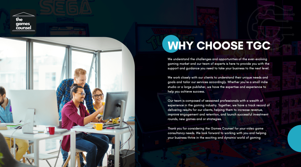 Games Counsel is a UK-based, Exec Connective Company, 15627981. All rights reserved. The content of this website is protected by copyright and other intellectual property laws. UK registered company.